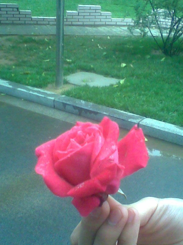 被风吹落的美丽月季和美丽的不知道是谁的手